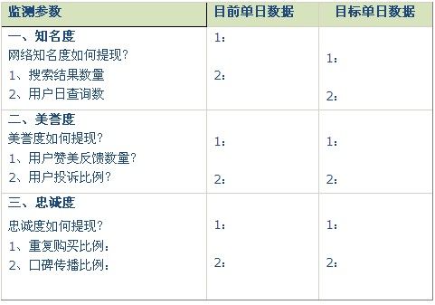 這三方面,每一塊都可以進(jìn)一步細(xì)化,然后通過數(shù)據(jù)來說明,下面是我們常使用的一個(gè)簡(jiǎn)單的表格: