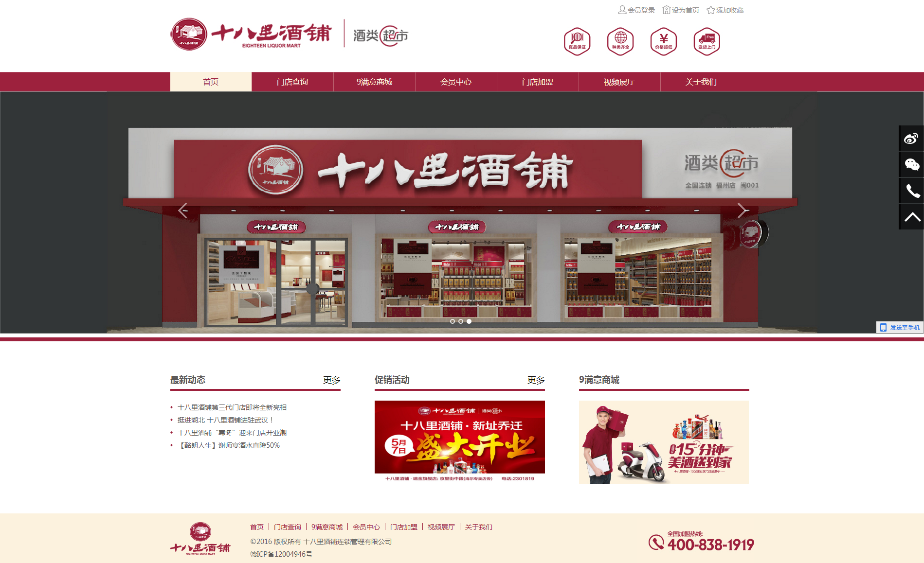 2016年4月29日,浩網科技為客戶十八里酒鋪量身打造的全新網站順利交付上線!