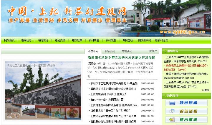 中國(guó)·上猶新農(nóng)村建設(shè)網(wǎng)(www.syxnc.gov.cn)在上猶縣新農(nóng)村建設(shè)工作領(lǐng)導(dǎo)小組辦公室和我司的積極配合下進(jìn)行了改版。新版如下: